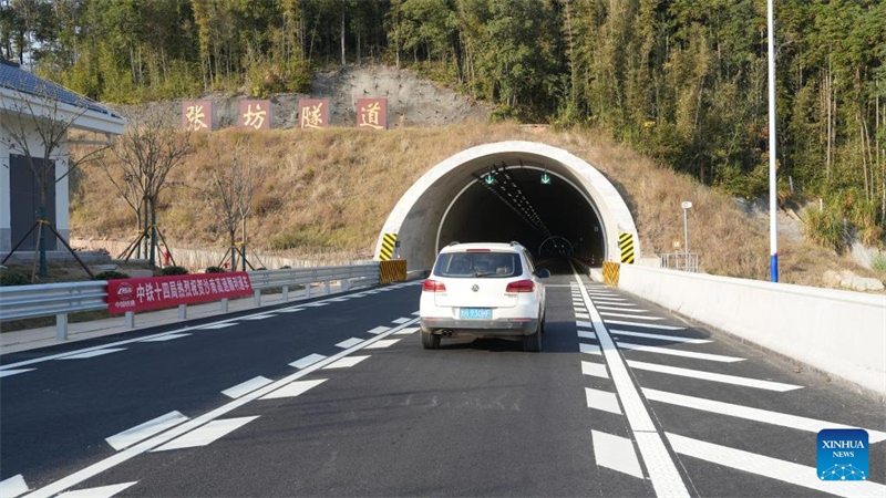 Dieses Foto wurde am 9. Dezember 2025 aufgenommen und zeigt einen Tunnel der Schnellstra?e Shaxian-Nanping in der süd?stlichen Provinz Fujian. (Yin Ting/Xinhua)