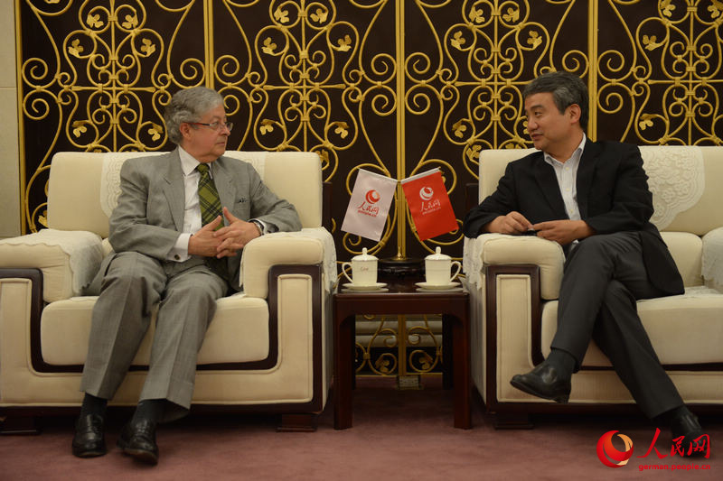 Schweizer Botschafter Jean-Jacques de Dardel (l.) zu Gast bei People's Daily Online |