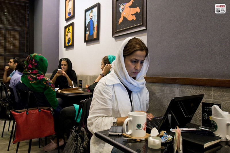 Eine Frau nutzt ihren Laptop in einem Café. In einigen iranischen St?dten gibt es bereits Café-Ketten wie Starbucks, um die Nachfrage der Mittelschicht zu befriedigen. |