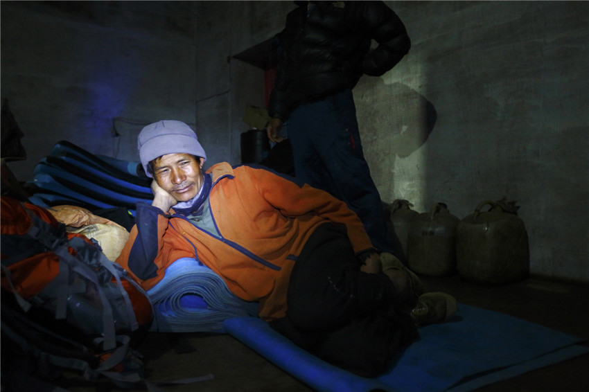 Ein Tr?ger ruht sich am 1. Mai 2014 in einem Restaurant in Solukhumbu aus. |