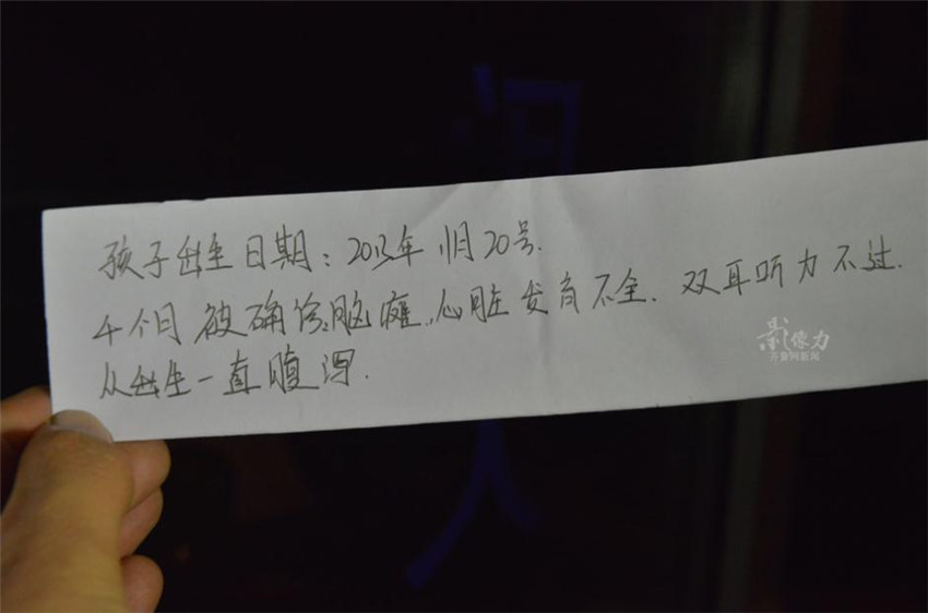 Auf einem Zettel, der beim Kind gefunden wird, steht: ?Das Kind wurde am 20. November 2013 geboren. Es leidet an infantiler Zerebralparese, einem angeborenen Herzfehler, einer H?rbehinderung und hat seit der Geburt Durchfall. |