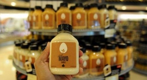 Das künstliche Ei in flüssiger Form in Flaschen |