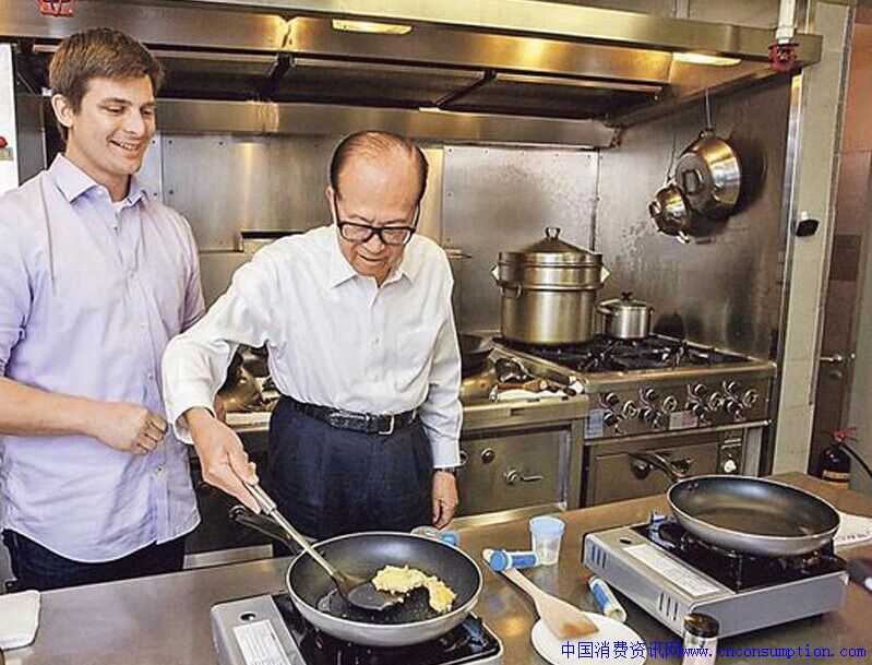 Li Ka-Shing kocht mit dem künstlichen Ei. |