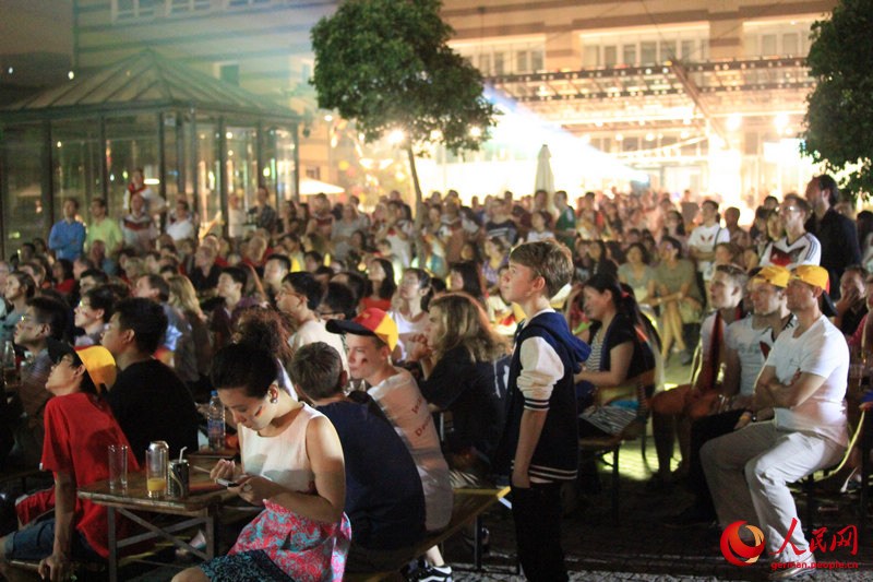 über 500 Fans - darunter auch Deutschlands Botschafter Michael Clauss - sind gekommen, um ihr Team im ersten WM-Spiel gegen Portugal zu unterstützen. |