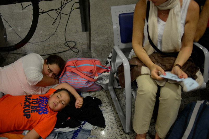 Auf dem Flughafen in Fortaleza schlafen die Fu?ballfans direkt auf den Sitzen oder sogar auf dem Boden. |