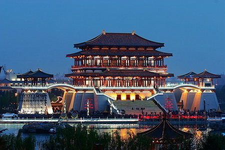 Das Tang-Paradies süd?stlich von Xi’an wurde erst im April 2005 er?ffnet. Der Themenpark umfasst 165 Hektar, 49 Hektar davon Wasserfl?che. Das Tang-Paradies ist nicht nur der gr??te Kulturpark im Nordwesten Chinas, sondern auch der erste Park, der die Tang-Zeit (618 bis 907) realit?tsnah widerspiegelt. Er ist in zw?lf Themenbereiche unterteilt, die den Besuchern Einblick in diese blühende Epoche geben.
