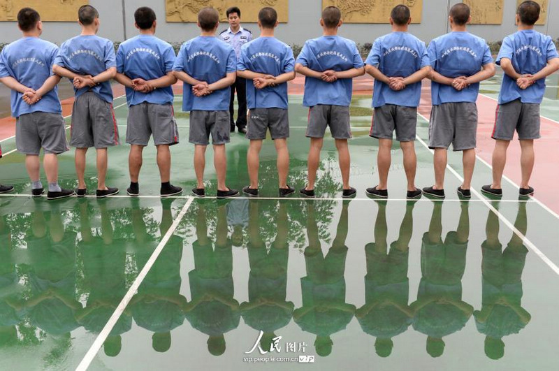 Ein Polizist leitet das Konditionstraining der Drogenabh?ngigen. |