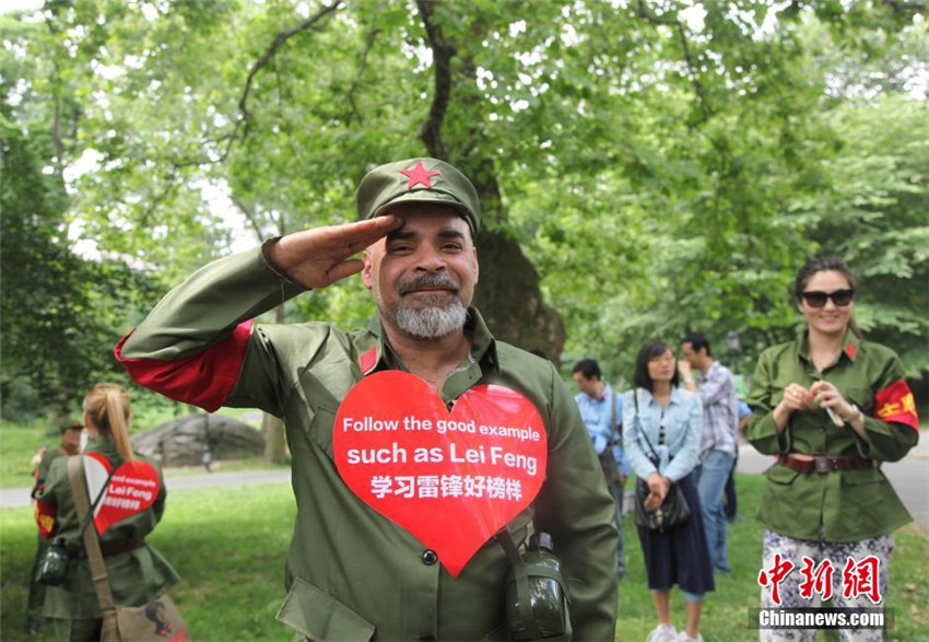 Die freiwilligen Helfer tragen Uniformen wie der Mustersoldat Lei Feng. |