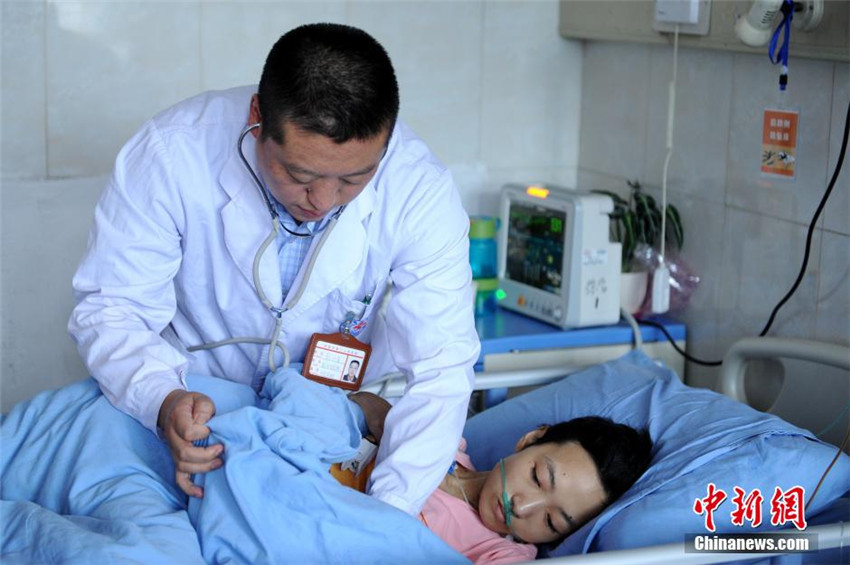 Ein Arzt untersucht die bewusstlose Zhou. |