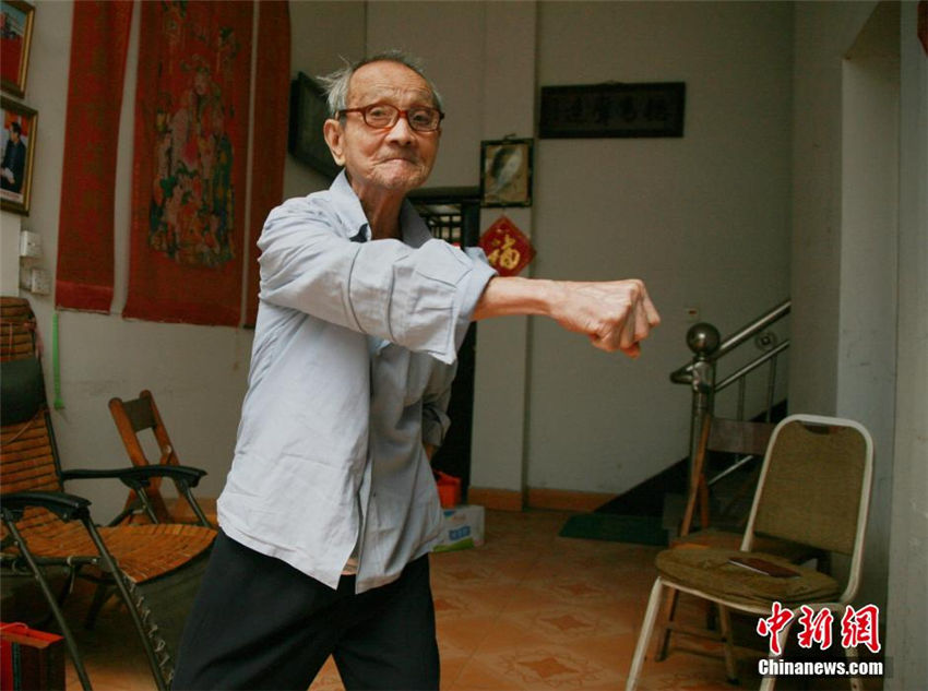 Der 106-j?hrige Wang Xuechun war sein ganzes Leben lang fast nie krank. Sein Langlebigkeits-Geheimnis: Taiji und Verdauungsspazierg?nge. |