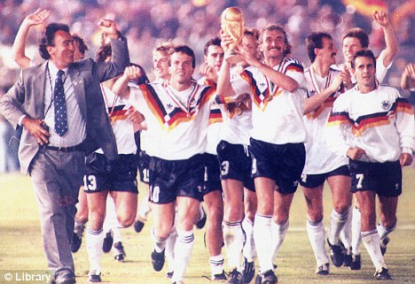 Sommer 1990, Italien. Im Finale von Rom besiegt die deutsche Mannschaft Argentinien mit Kapit?n Diego Armando Maradona mit 1:0. Beckenbauer war damit der erste Deutsche, der den WM-Pokal als Spieler und als Trainer gewinnen konnte. |