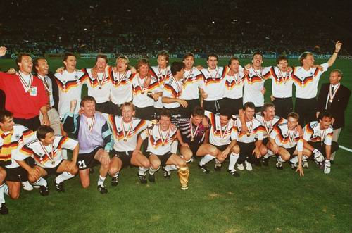 Sommer 1990, Italien. Im Finale von Rom besiegt die deutsche Mannschaft Argentinien mit Kapit?n Diego Armando Maradona mit 1:0. Beckenbauer war damit der erste Deutsche, der den WM-Pokal als Spieler und als Trainer gewinnen konnte. |