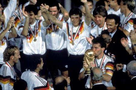 Sommer 1990, Italien. Im Finale von Rom besiegt die deutsche Mannschaft Argentinien mit Kapit?n Diego Armando Maradona mit 1:0. Beckenbauer war damit der erste Deutsche, der den WM-Pokal als Spieler und als Trainer gewinnen konnte. |