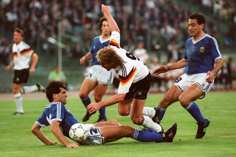 Sommer 1990, Italien. Im Finale von Rom besiegt die deutsche Mannschaft Argentinien mit Kapit?n Diego Armando Maradona mit 1:0. Beckenbauer war damit der erste Deutsche, der den WM-Pokal als Spieler und als Trainer gewinnen konnte. |