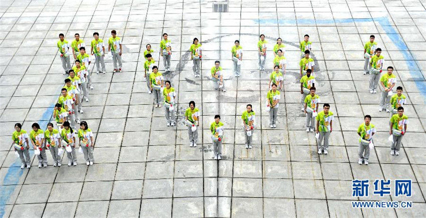 Die Freiwilligen bilden ein ?I LOVE YOU“. (Foto: Yue Yuewei) |