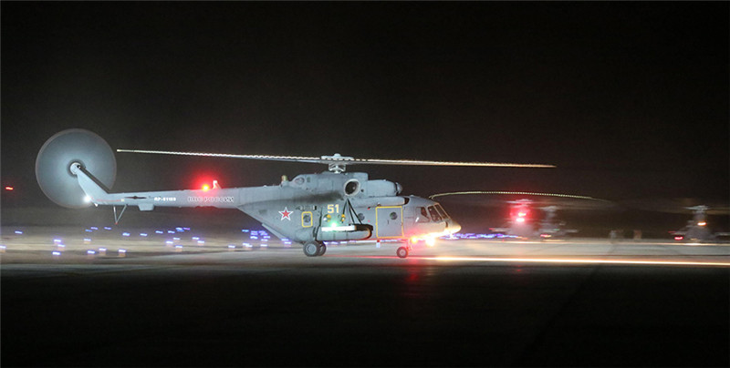 Am selben Abend kommt auch ein russischer Hubschrauber vom Typ M-8 in Zhurihe an. |
