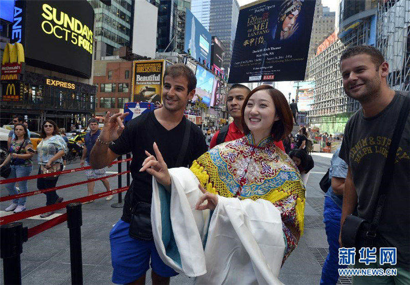 Darsteller der Mei Lanfang-Operntruppe auf dem Times Square in New York |