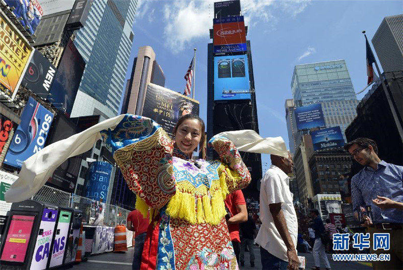 Darsteller der Mei Lanfang-Operntruppe auf dem Times Square in New York |