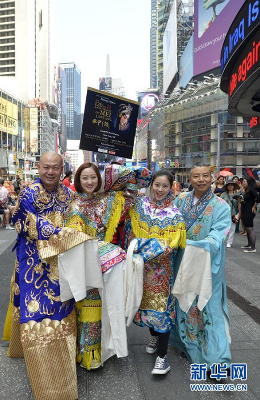 Darsteller der Mei Lanfang-Operntruppe auf dem Times Square in New York |