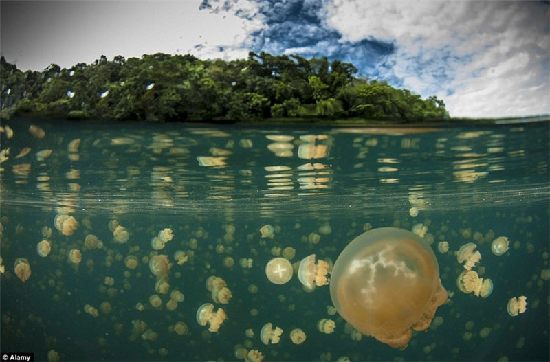 Der Lake Jellyfish ist ein mariner See im südpazifischen Inselstaat Palau. Die rosa- und purpurfarbenen Quallen darin sind die weltweit einzigen bekannten ungiftigen Quallen. Grund dafür ist das einstmalige Aussterben von anderen Meerestieren und –pflanzen im See. Ohne natürliche Feinde gibt es für die Quallen keinen Grund, selbst giftig zu sein.