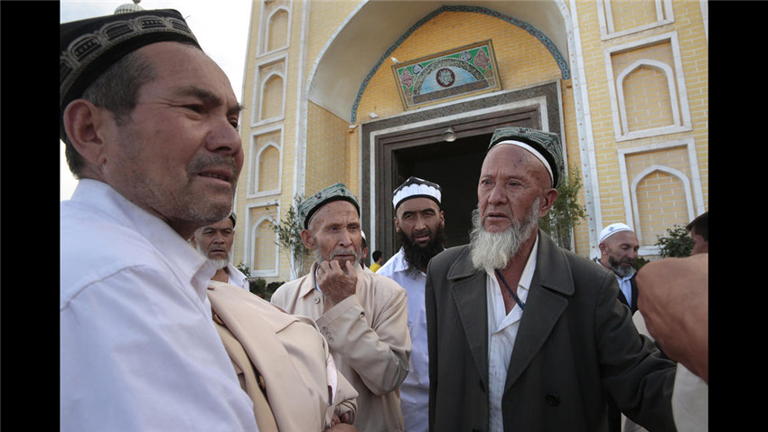 Einige M?nner vor der Id-Kah-Moschee, einer der gr??ten Moscheen in China. |