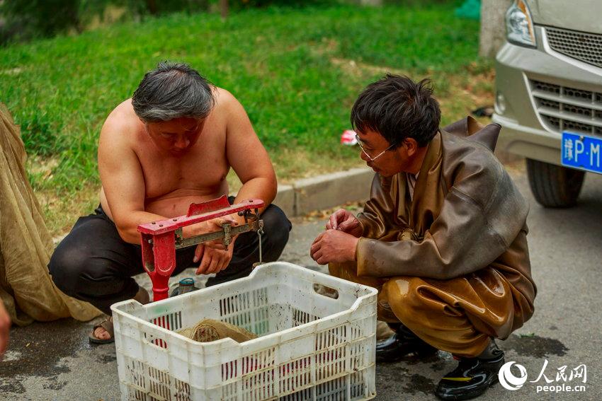 Dong verkauft seinen Fang. |