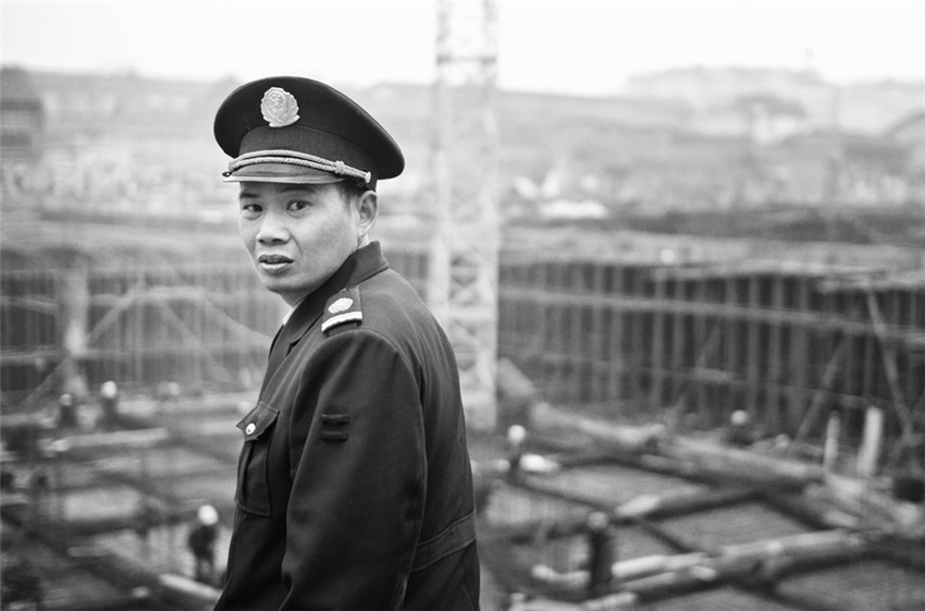Der Wachmann auf der Baustelle zeigt sich skeptisch vor der Kamera. Die traditionellen Lehmh?user werden allm?hlich von Geb?uden aus Beton und Stahl ersetzt. |