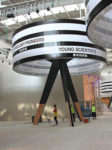 ?Zurzeit geht die Einrichtung reibungslos vonstatten und das Projekt ist schon zu 50 Prozent fertiggestellt. Voraussichtlich wird die Einrichtung sehr bald endgültig abgeschlossen sein. Danach werden acht bis neun Tage für die letzten Anpassungen genutzt, damit die Einrichtung den Vorgaben der Konferenz entspricht und den Teilnehmern gute Bedingungen bietet“, so Wang. Darüber hinaus betonte Wang, dass die eingerichtete Fl?che dieses Jahres verglichen mit den Jahrestreffen der letzten drei Jahre am kleinsten sei, aber den Teilnehmern trotzdem Bequemlichkeit und ein internationales Flair bieten würde.