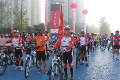 Der stellvertretende Bürgermeister der Stadt Luzhou in der Provinz Sichuan macht vor, wie's geht und f?hrt am autofreien Tag mit dem Bus zur Arbeit. Mehrere Hundert Personen bilden eine Fahrrad-Gruppe. |