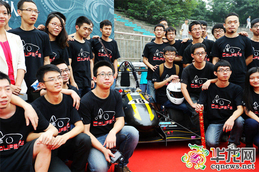 Das FSAE-Team von der Chongqing-Universit?t mit dem neuen Rennwagen |