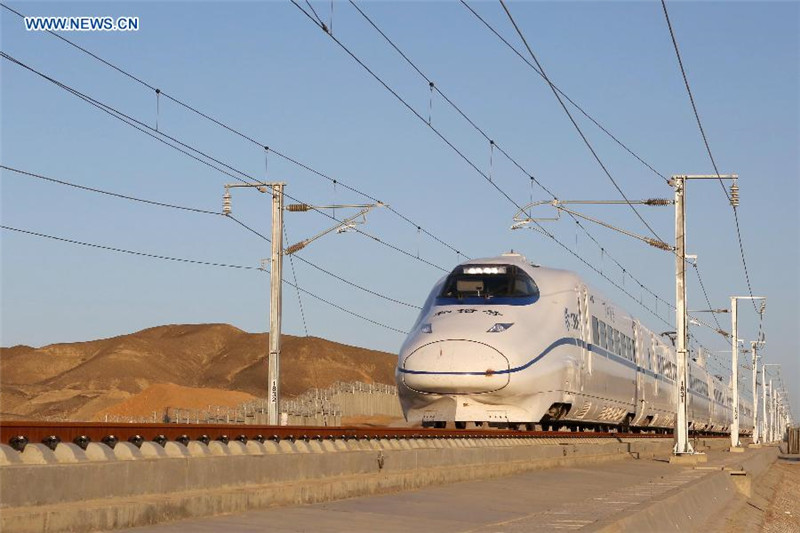 Der Hochgeschwindigkeitszug auf einer Probefahrt in Xinjiang |