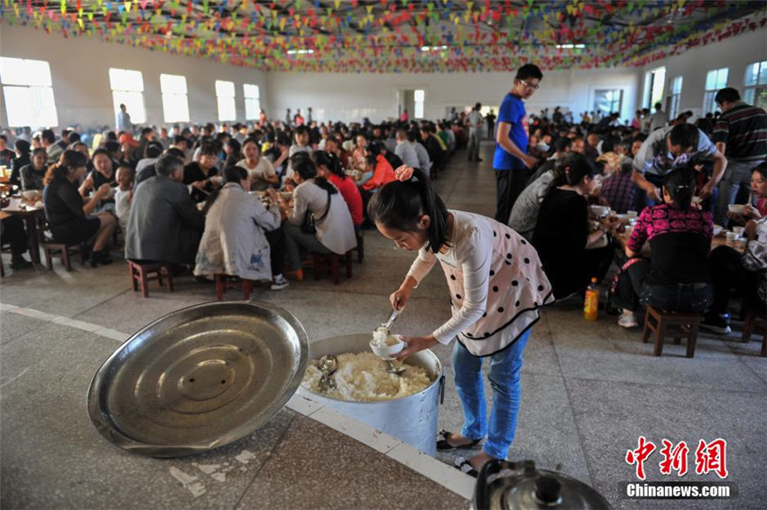 Das Hochzeitsbankett findet in einer gro?en Halle der l?ndlichen Gemeinde statt. |