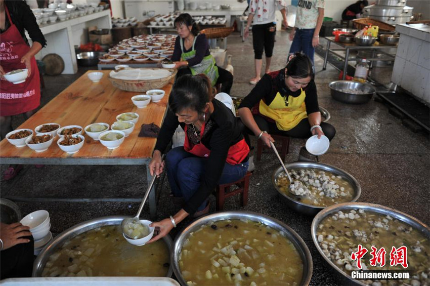 Die Familie des Hochzeitspaars bereitet zusammen mit Aushilfen vom Dorf die Gerichte vor. |