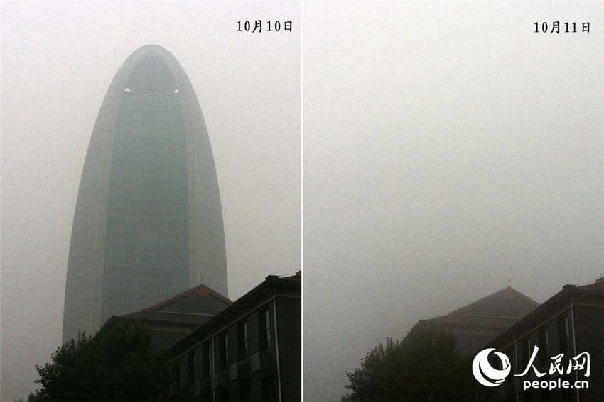 Das Geb?ude der People's Daily ist heute im Nebel und Smog kaum sichtbar. |