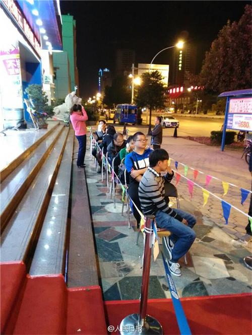 Schon um Mitternacht warten die ersten Apple-Fans vor den L?den auf die neuen iPhones. (Fotoquelle: Sina Weibo von People Daily) |
