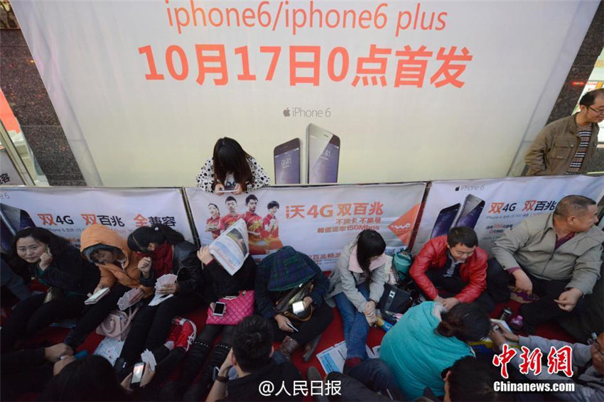 Schon um Mitternacht warten die ersten Apple-Fans vor den L?den auf die neuen iPhones. (Fotoquelle: Sina Weibo von People Daily) |