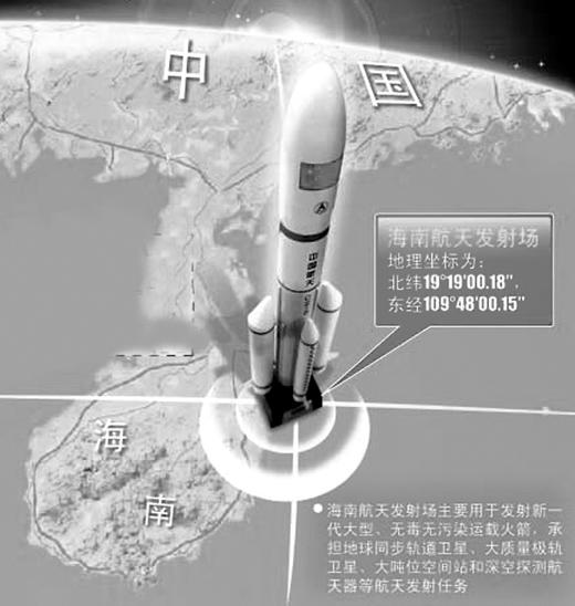 Unter Genehmigung des chinesischen Staatsrates und der Zentralen Milit?rkommission wurde der Bau des Weltraumbahnhofs Wenchang auf der Insel Hainan im September 2009 in Gang gesetzt. Er geh?rt weltweit zu den wenigen Raketenstartzentren, die in niedrigen Breiten liegen. Fünf Jahre nach Baubeginn ist der Weltraumbahnhof fast fertig.