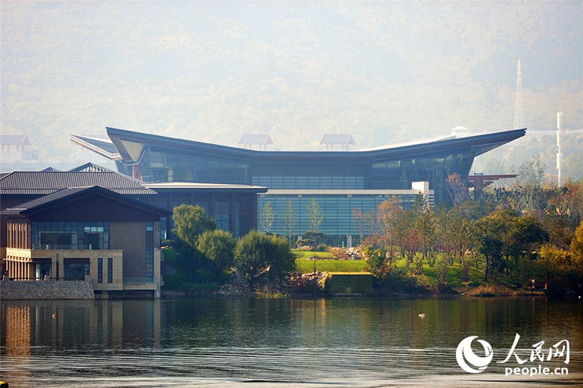 Das internationale Konferenzzentrum auf der Insel mitten im Yanqi-See. (Foto: Weng Qifan) |