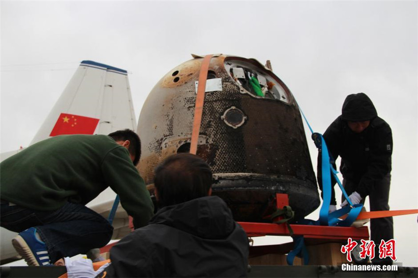Die Rückkehr-Sonde wird nach Beijing gebracht. (Foto: Zhang Su) |