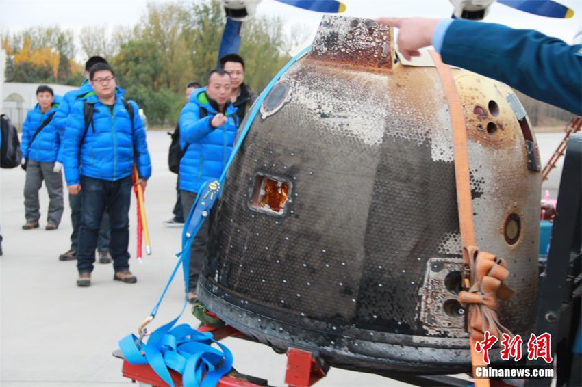 Die Rückkehr-Sonde wird nach Beijing gebracht. (Foto: Zhang Su) |