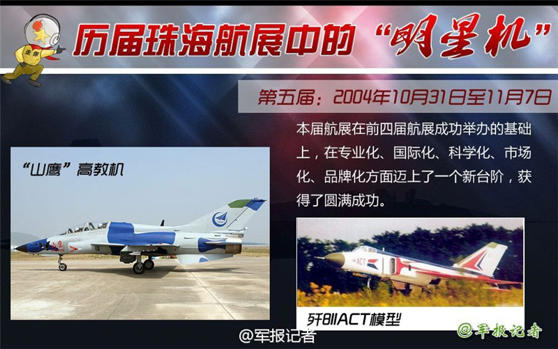 Ein FTC-2000-Schulflugzeug (links) und eine J-8IIACT (rechts) an der fünften Ausstellung in Zhuhai vom 31. Oktober bis zum 7. November 2004. |