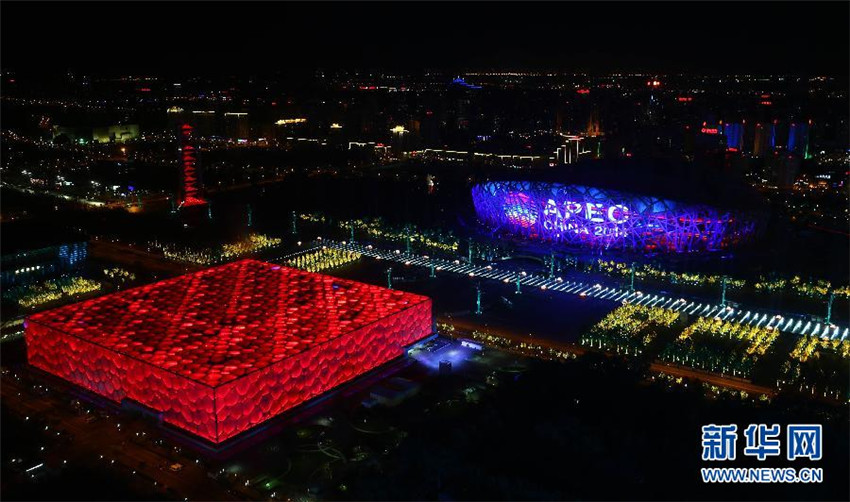 Das ?Vogelnest” und der ?Wasserwürfel” im APEC-Look. |