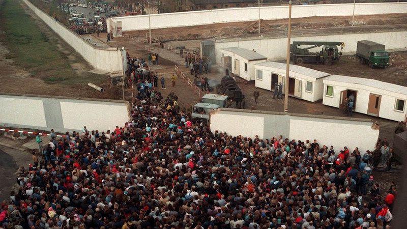 11. November 1989: Zahlreiche DDR-Bürger warten an der Grenze nach Westberlin. |