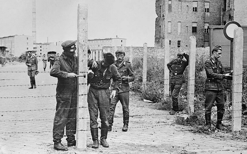 14. August 1961: Soldaten der DDR errichten einen Drahtzaun. |