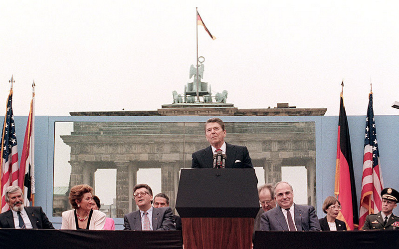 Am 12. Juni 1987 appelliert US-Pr?sident Ronald Reagan vor dem Brandenburger Tor an die Führung in Moskau: ?Mr. Gorbachev, tear down this wall!“ |