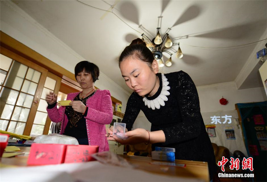 Xing Qiaomei (links) und ihre Schwiegertochter verpacken sorgf?ltig die Ware, die am n?chsten Tag zugestellt werden soll. |
