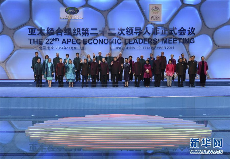 Staatspr?sident Xi und seine Frau Peng lassen sich zusammen mit Teilnehmern des 22. APEC-Treffens vor dem Begrü?ungsbankett fotografieren. (Xinhua/Ju Peng) |