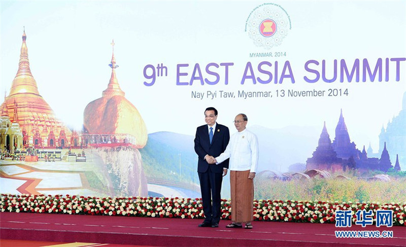 Li Keqiang wird von Myanmars Staatspr?sident Thein Sein begrü?t, bevor der Gipfel stattfindet. |