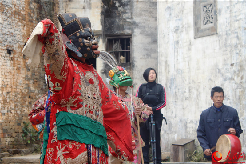 Der Nuo-Tanz gibt es in dieser Art nur in Wuyuan zu bestaunen. Die T?nzer mit ihren furchteinfl??enden Masken sollen die Teufel und b?se Geister vertreiben. |
