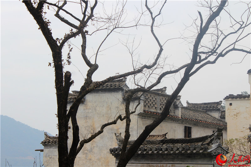 Selbst bei wolkenverhangenem Himmel ergeben die Hui-H?user mit den kargen B?umen ein poetisches Bild. |